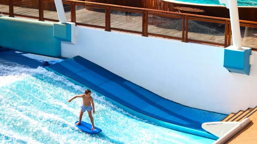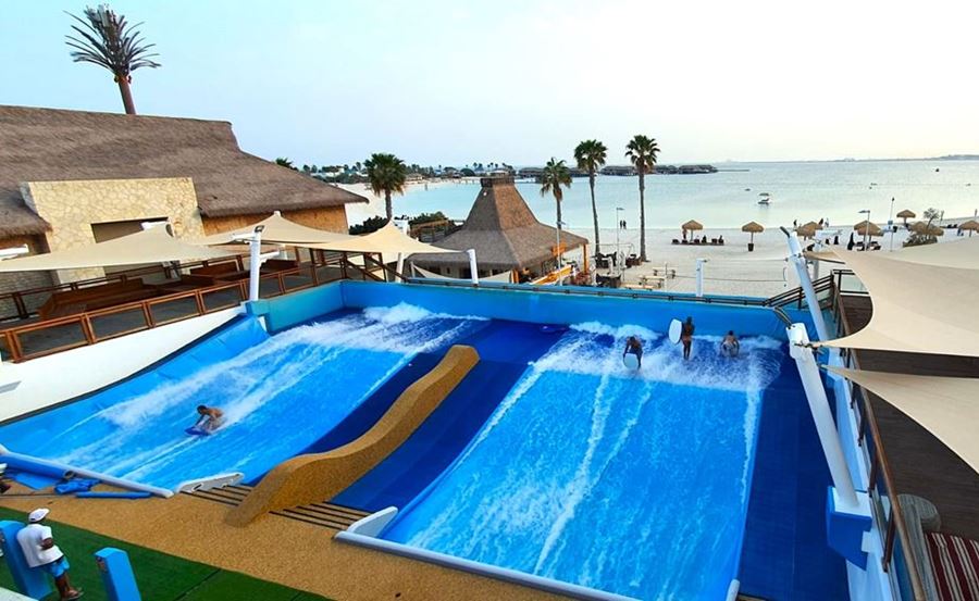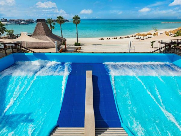 The Banana Island Resort prides itself on offering unique experiences, including the Splash Surf Pool, a WaveSurfer Extreme with 4 jets. This surf ride, the only one of its kind on the island, features a specially designed extreme curve tailored to the resort's aesthetics and offers surfers the chance to showcase their skills with extreme tricks and challenges. They also offer surfing simulator lessons and organize surf competitions for extra revenue.