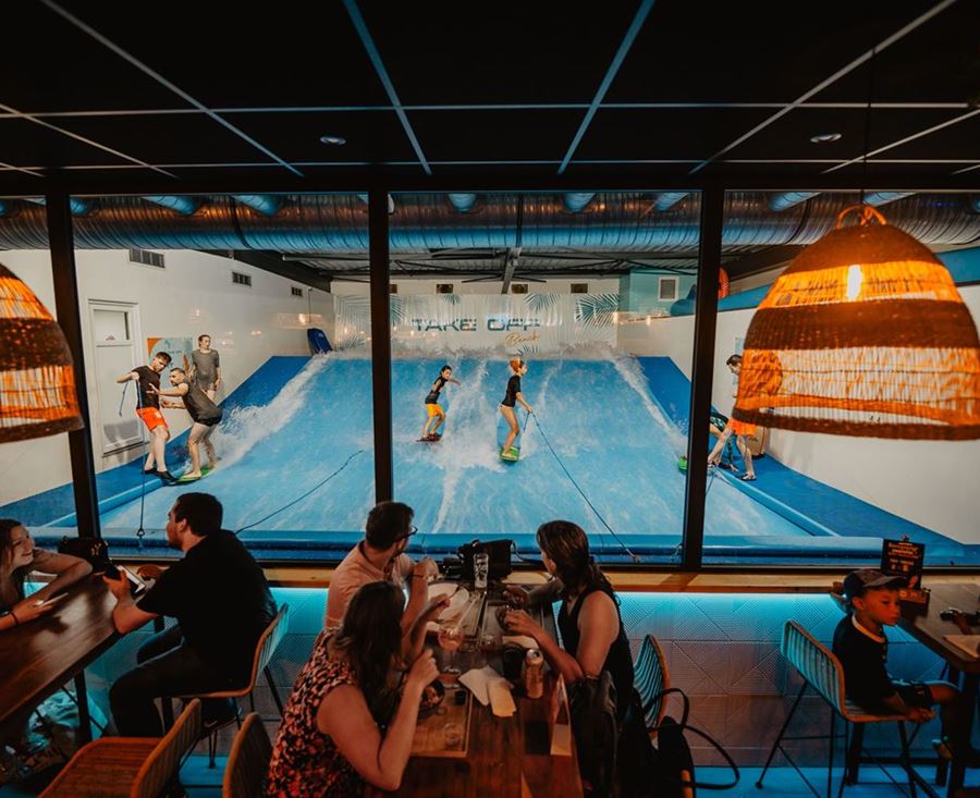 Chez Take Off, le WaveSurfer rend le surf indoor accessible à tous tout en offrant une ambiance de plage inoubliable.
