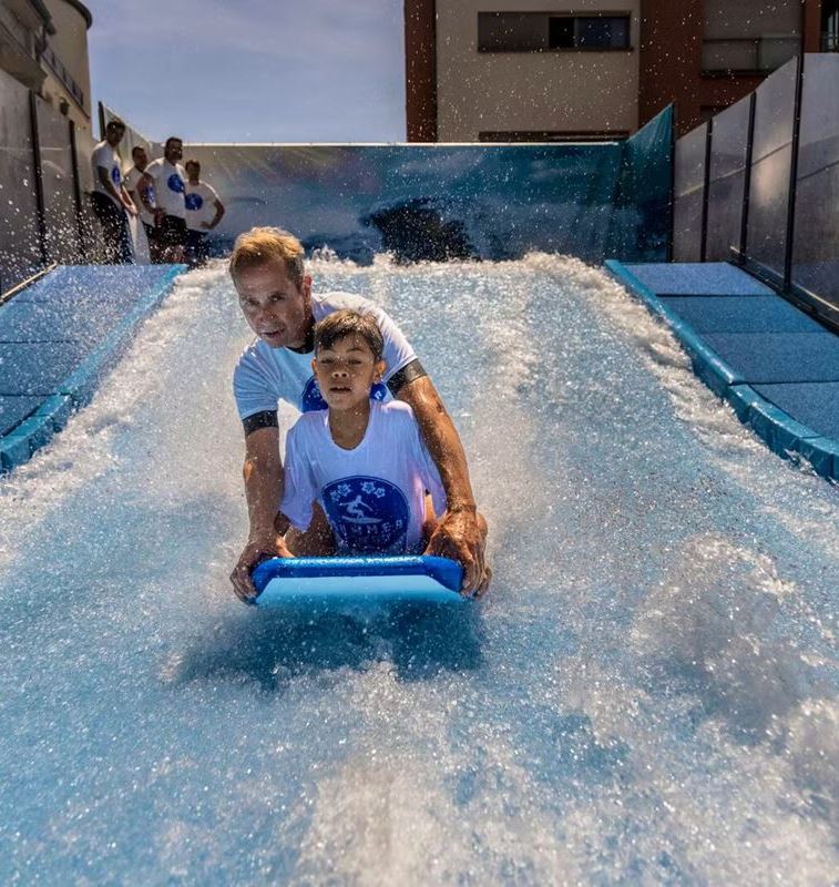 Up to two people can surf simultaneously on the outdoor surf machine for 30 minutes.