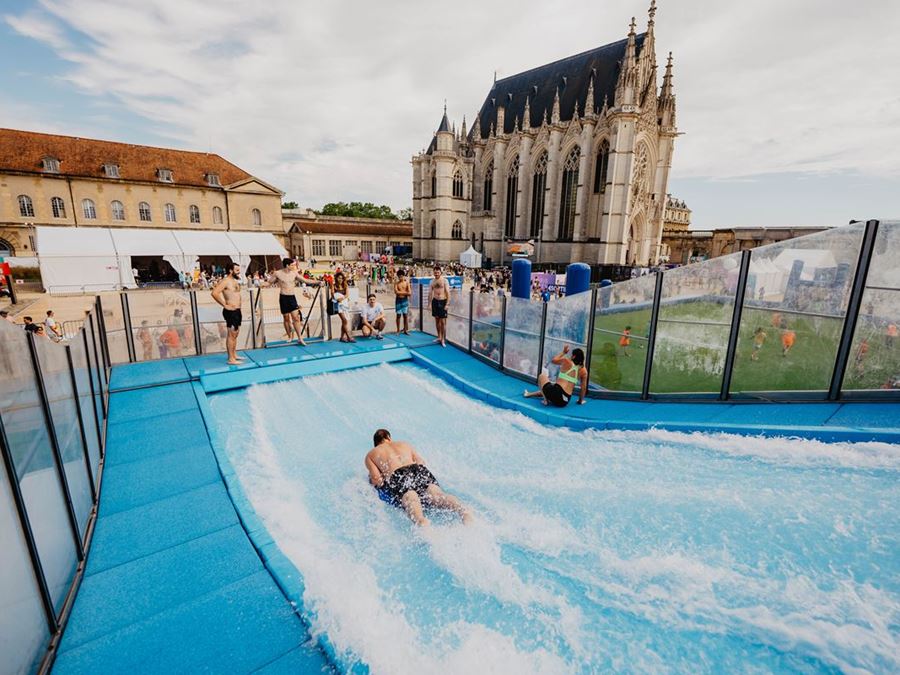 L'une des attractions phares de cette Fan Zone était le WaveSurfer mobile sur remorque, installé dans la Cour Royale. Ce simulateur de surf personnalisé, monté sur une remorque pour plus de mobilité, a permis d'apporter le surf au cœur de Paris. Tant les surfeurs expérimentés que les novices ont eu l'opportunité de s'essayer au surf artificiel dans un environnement sûr et contrôlé.