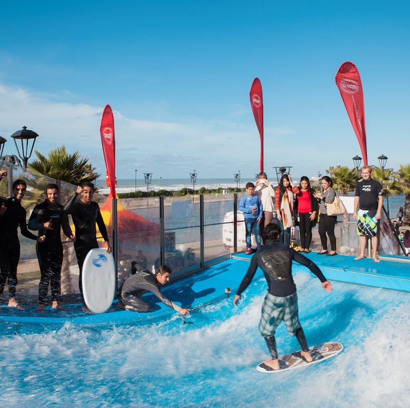 À l'hiver 2013, le Morocco Mall est devenu encore plus palpitant avec l'ajout du WaveSurfer Mobile sur remorque. Cette machine à vague artificielle surf innovante a transformé le centre commercial en un véritable hub d'activités. Les acheteurs et visiteurs ont eu l'opportunité unique de faire du surf artificiel dans un environnement contrôlé et sécurisé, juste à l'extérieur du mall.
