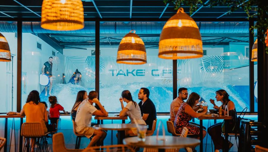 Cet espace original allie l’atmosphère détendue d’un bar de plage à l’ambiance chaleureuse d’un coucher de soleil en bord de mer. Chaque visiteur a ainsi l’impression de prolonger l’été à l’infini à chaque fois qu’il franchit les portes de ce lieu. La machine à vague surf artificielle, associée aux cocktails exotiques, tapas, et plats d’été, crée une expérience ensoleillée et festive, véritable oasis urbaine.