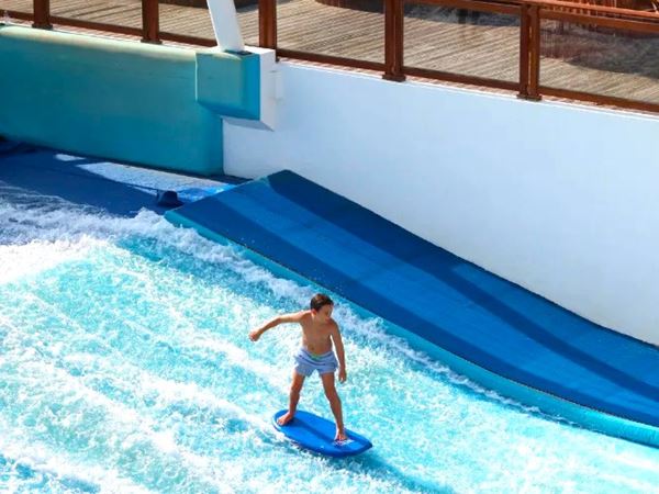 Ce complexe insulaire privé se distingue par ses expériences uniques, dont une attraction surf avec une courbure défiant les surfeurs sur le WaveSurfer Extreme.